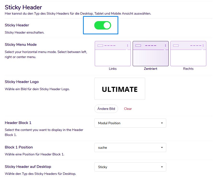 Add a sticky header to your Joomla website with one click. No additional plugins required. Configure it according to your website's needs.
