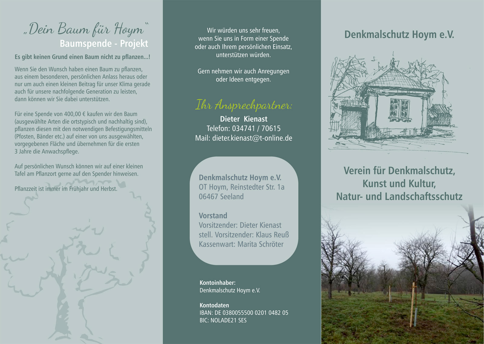 Seit 2019 läuft das Projekt "Dein Baum für Hoym". Bisher (Stand 09/23) haben wir für unsere 45 Baumspender die unterschiedlichsten Baumarten an verschiedenen Standorten in Hoym gepflanzt.