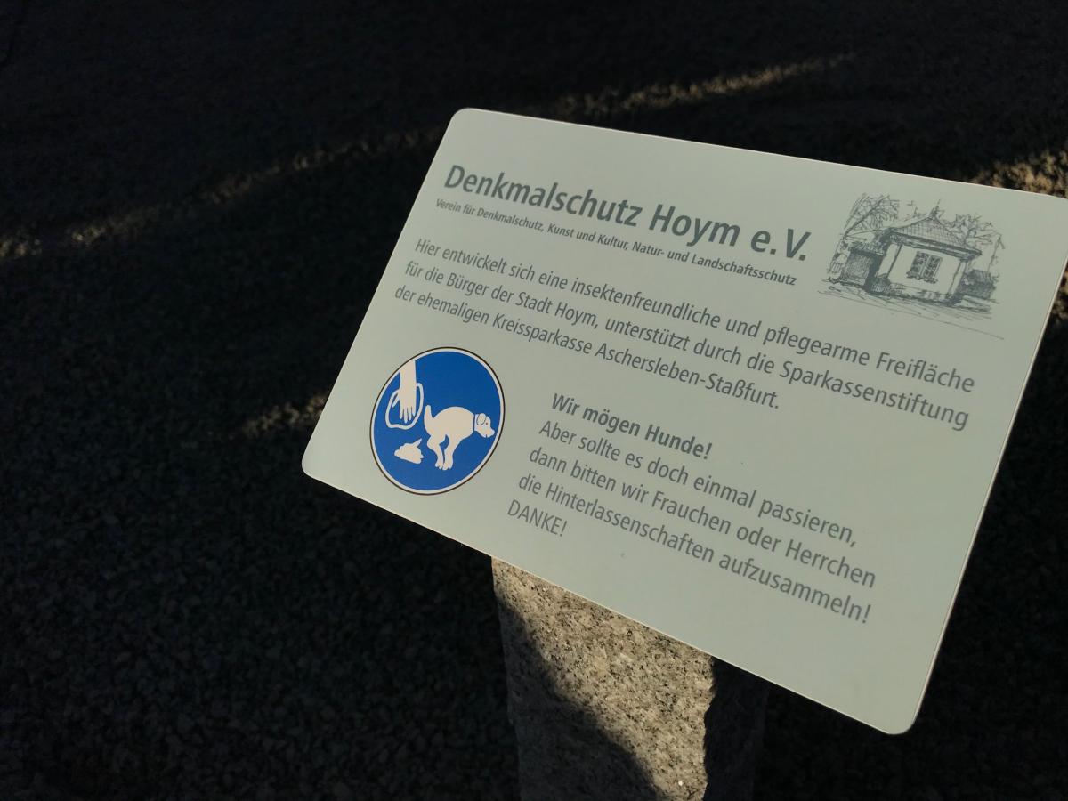 Hier wurde ein insektenfreundliches und pflegearmes Staudenbeet in Zusammenarbeit mit der Begegnungsstätte und dem Denkmalschutz Hoym e.V., ermöglicht durch Spenden, angelegt.